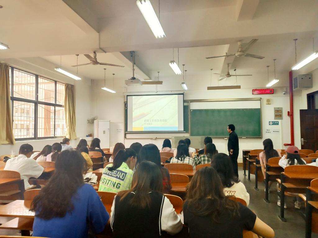 会议开始,全体党员起立,齐唱国歌,重温入党誓词。曾令宙老师带领同学们一起探讨、学习政府中英文报告。一起了解相关的重要词汇、翻译技巧方法、重要表达对应翻译等。