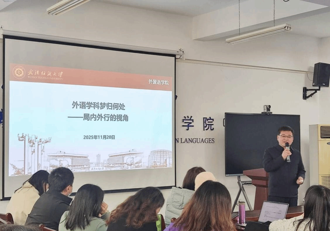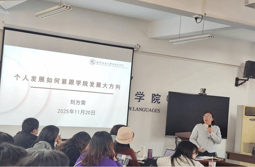 谢易将自己参加的广东外语外贸大学举办的“服务国家重大战略的外语教育创新与实践”学术会议的有关内容给老师们进行了汇报。他介绍本次会议的主要内容是紧扣国家战略需求,围绕区域国别学、全球胜任力、人工智能三大关键方向。他指出本次会议上全国高校外语教育领域专家学者、教育机构代表齐聚一堂,认为新时代外语教育需打破单一语言教学壁垒,通过“外语+数据科学”“外语+国际传播”等跨学科融合路径,培养兼具跨文化沟通能力、专业复合素养与技术应用能力的全球治理人才。谢易还说,该会议还就智慧课程平台搭建、VR 虚拟仿真实践教学、跨国联合培养机制等创新举措进行交流,提出以AI技术赋能个性化学习、以产学研协同完善实践体系,为推动外语教育从“知识传授”向“能力培养”转型、服务国家对外开放与全球治理人才储备提供了切实可行的实践方案。