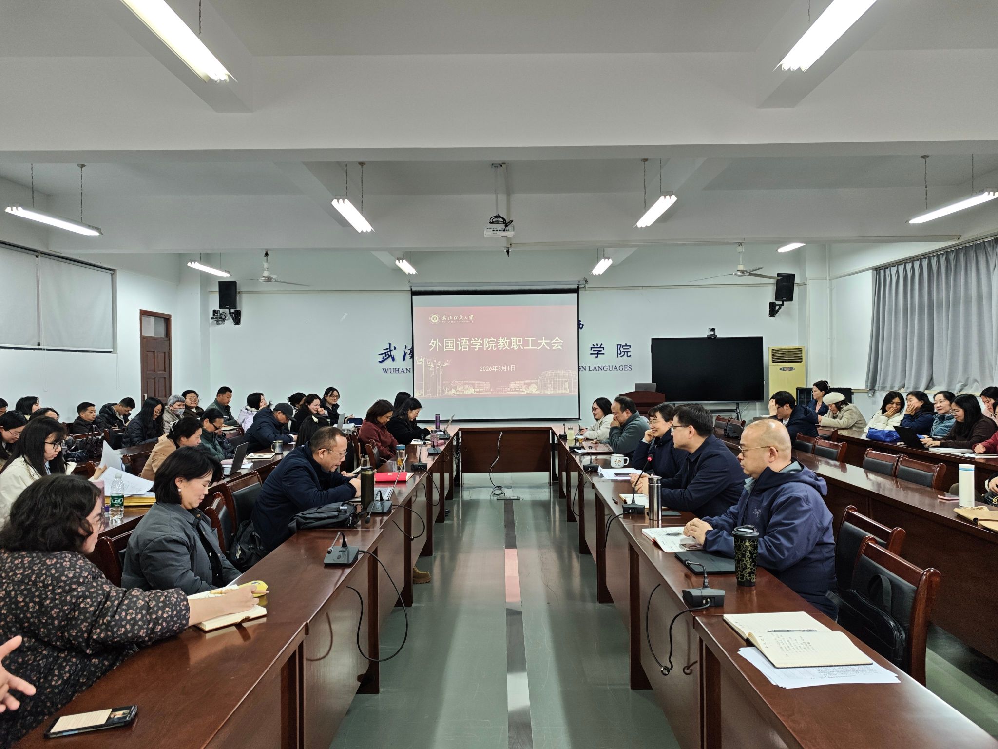 全体教职工参加会议。