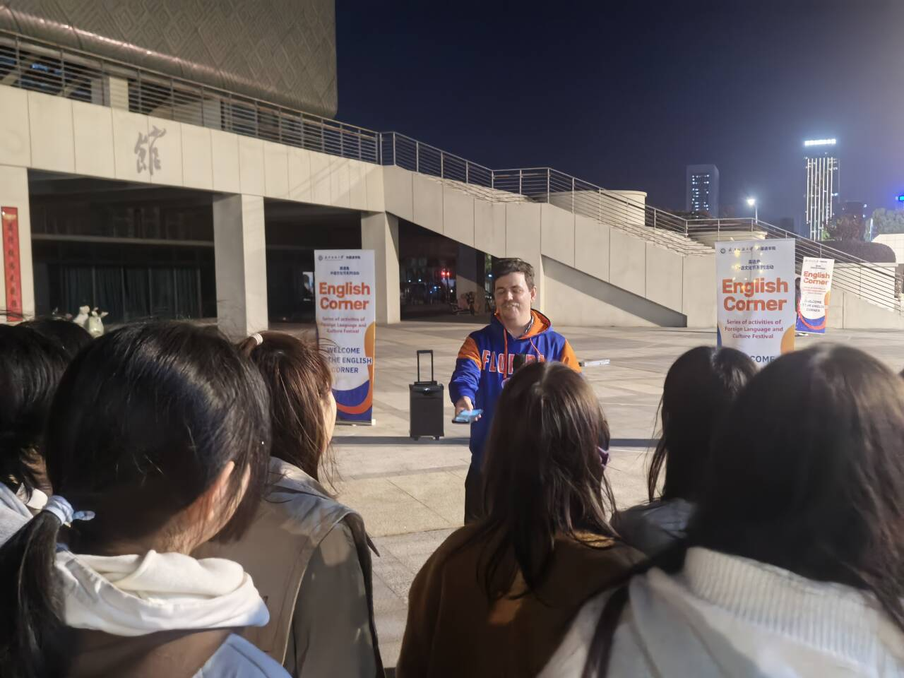 英语角主题活动在体育馆前小广场顺利举办。