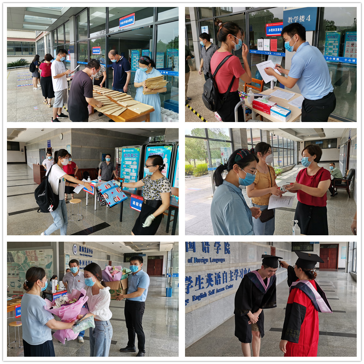 党委书记胡中原每天坚持送走最后一个毕业生才下班,毕业班辅导员阎浩被毕业生戏称为最敬业的“滴滴司机”,还有副院长柯群胜、罗绮伦,副书记王芳,院办主任刘晨昊、英语系副主任钱茂华,资深教师王敬忠、曹火群、庄小华,青年教师王越、曹福然,实验室老师邱凌云、苏晓勇,教学秘书张小燕,辅导员卫周瑶、聂啸天……老师们或是在帮毕业生打包搬运行李每天汗流浃背,或是为毕业生办理离校手续让毕业生感受离别前的温暖,处处彰显真挚的师生情谊。