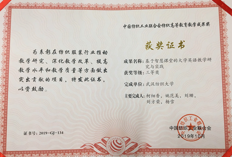全体教师党员讲授党课。王越、刘珊老师获批湖北省教育科学规划重点课题,刘珊老师指导学生获评首届全国理工类院校本科生外语创新大赛总决赛一等奖,柯细香老师获评“纺织之光”中纺联高等教育教学成果奖三等奖、香港桑麻基金会奖教金,王辞老师入选第七届世界军人运动会翻译中心专家评审组副组长。