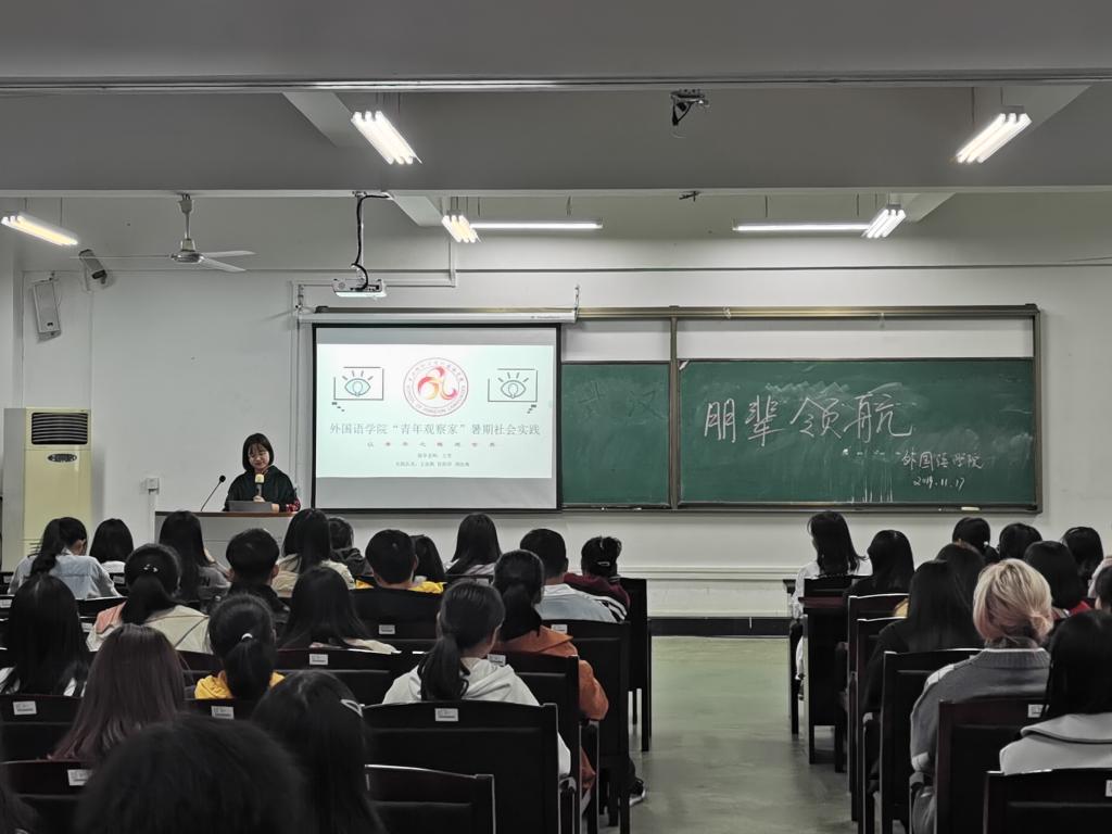 另外,她还分享了实践过程中,东莞之行经历的趣闻与故事。她勉励同学们要积极与老师沟通交流,向身边优秀的人学习。在要努力学习本专业文化知识、培养口语交际能力和第二外语应用能力的基础之上,还要立足于社会实践,将自己锻造成全面发展的复合型英语专业人才。