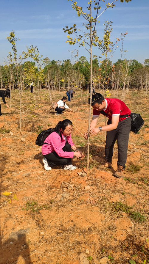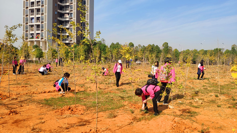 经过近一个小时的辛苦劳作,银杏林的杂草被清除一空,连缠绕在树枝上的藤蔓,也被老师们细心清除。