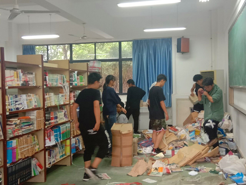 十余名志愿者在阎老师的带领下,先将杂物搬出教室,大家一起携手劳动,一部分人拿着抹布,打水清洁书架,一部分学生将书籍分类归置到各个清洁好的书架上。最后,大家一起对部门图书进行了归类摆放。在大家辛勤付出下,图书室焕然一新,为下一步创设具有nba博彩