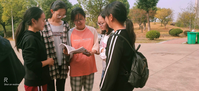 英语11901班的读书分享活动在图书馆附近展开,心理委员闵文慧主持活动,同学们纷纷结合自己的学习所得谈体会,现场氛围活跃。