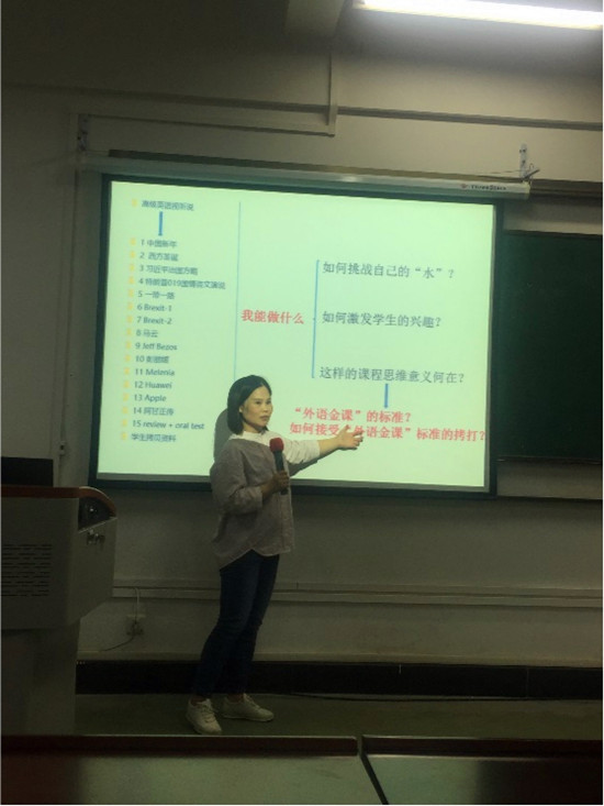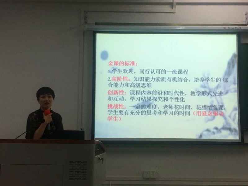 彭资老师以“打造金课,淘汰水课,建设金慕课”为题汇报了教育部当前对于大学课程提出的新要求。一流的课程需要具备“高阶性”、“创新性”、“挑战性”这三个特点。英语课程作为一门语言课程同时,也兼具着向世界“传播中国文化”的历史重任。