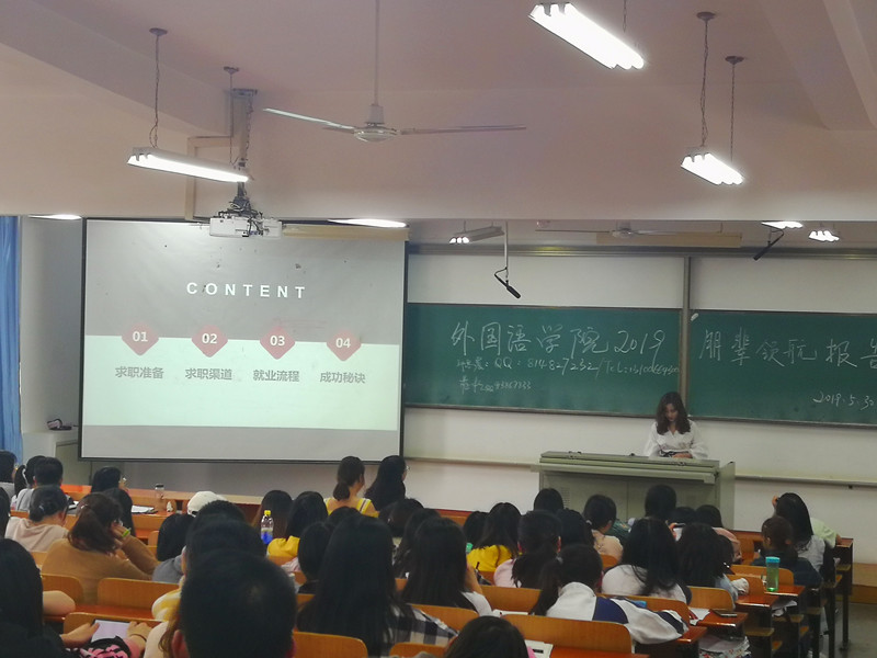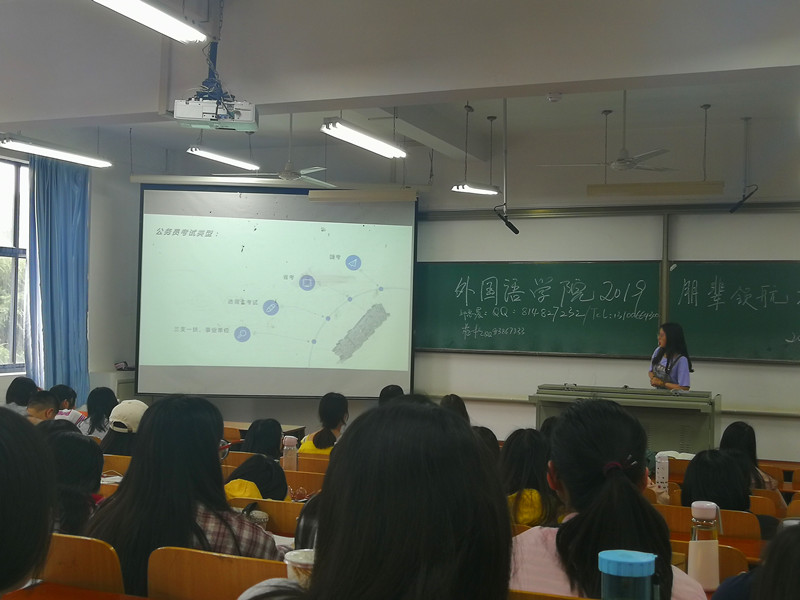 在崇志楼120教室举办了2019年朋辈领航讲座—考研求职出国考公经验分享交流会。2019届优秀毕业生代表梅桂、邱思晨、刘静、向钰受邀出席并作经验交流。nba博彩