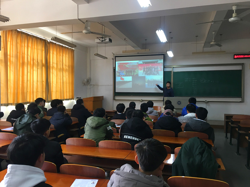 2017级学生、退伍军人于天伦进行军旅生活分享。宣讲会由辅导员阎浩老师主持。