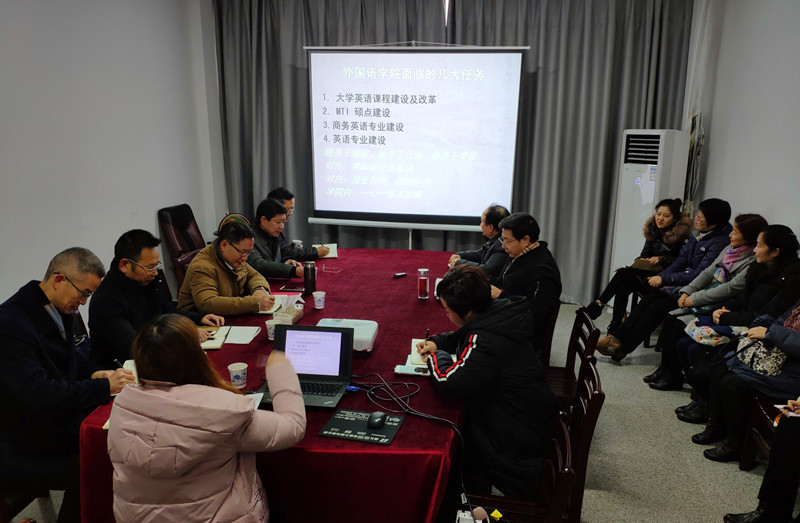 最后,彭育园校长提出两点希望,一是希望外院全体教师要高度重视课堂教学“主渠道”作用发挥,积极融入“课程思政”工作理念,大力培养大学生英语学习兴趣,让学校新时代本科人才培养呈现新气象;二是希望外院领导班子在前期良好工作的基础上,继续发扬团结奋斗精神,着力推进外语学科建设进入新的发展阶段,期待外院收获更多的发展成效。