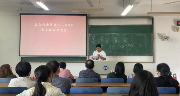 随后,19级学生代表蔡文斌和20级新生代表鄢奕分别进行了一段英文和中文发言,既激发了新生对外语专业的热情,也表达了对未来学习生活的憧憬期盼。
