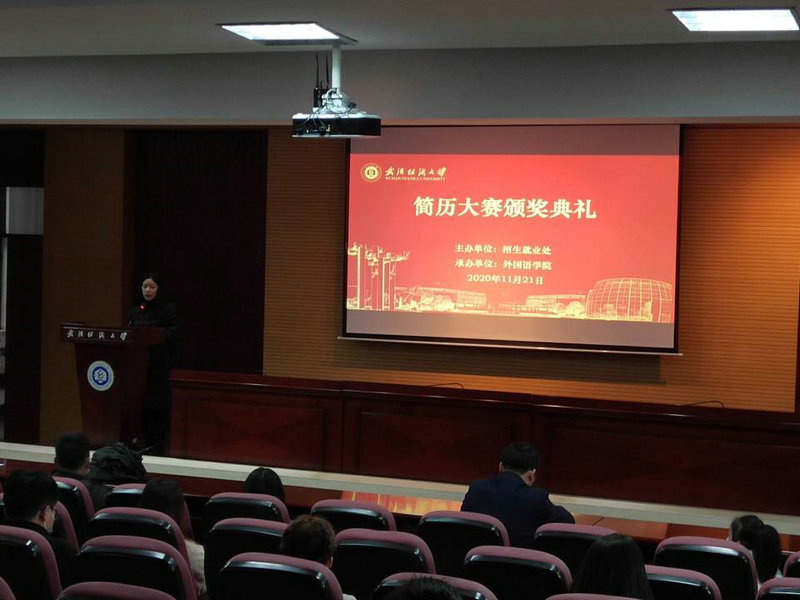 承办的武汉纺织大学2020年简历制作大赛颁奖典礼在行政楼二楼学术报告厅落下帷幕。学校招生就业处副处长曾文静、nba博彩