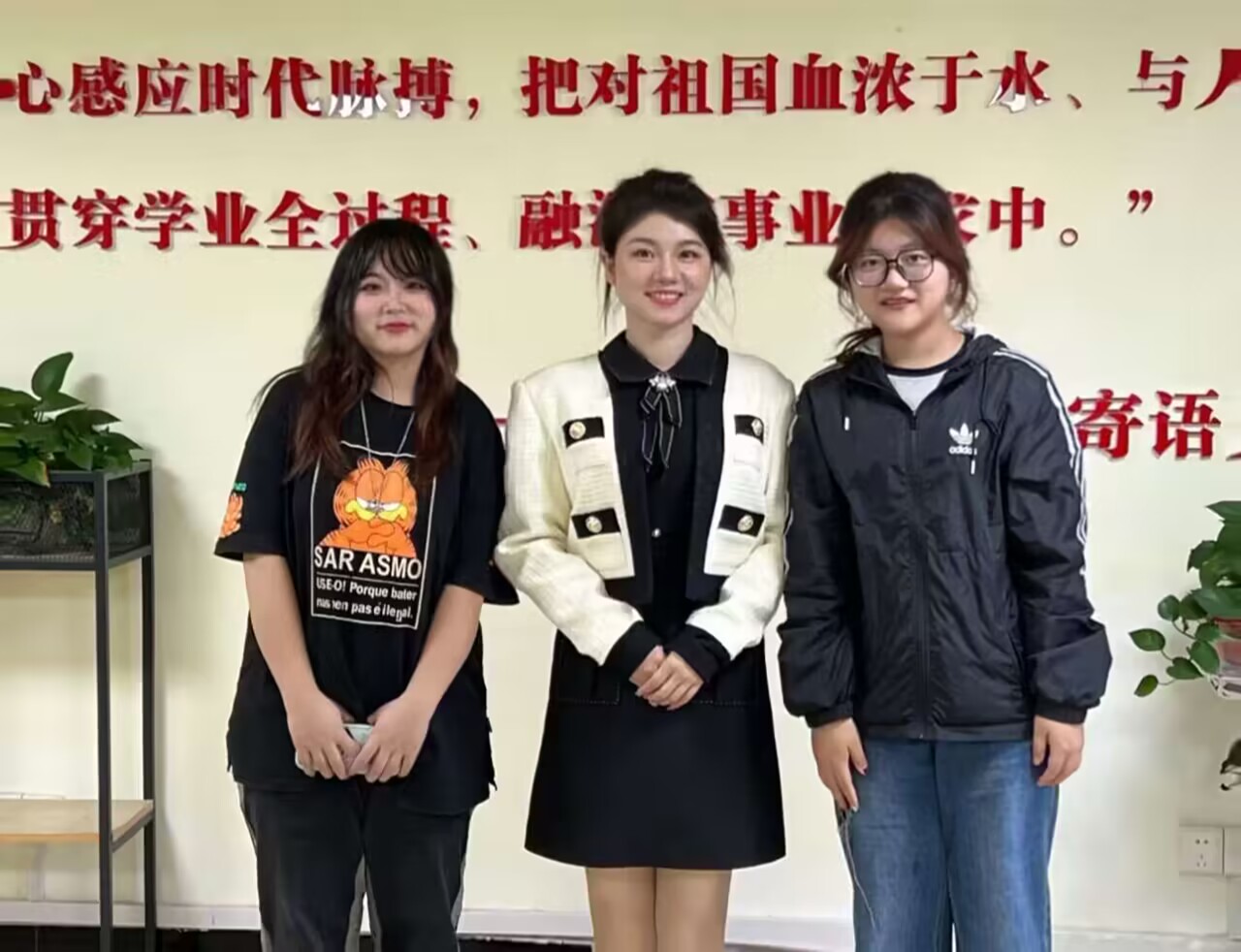 王梦恬:同学们都对大学期间的学习生活充满向往和憧憬。我觉得在这期间要做的事情很多。首先是把课堂知识消化,然后在此基础上多参加志愿服务活动,带着自己的专业知识去开阔眼界,为世界文明交流搭建桥梁。要学会自我管理时间,在平衡自己课程学习的基础上,尽可能多地获得额外实践经验。二是要有明确地计划。随着就业压力的增大,社会上开始掀起‘考证热’。各类人才都希望通过专业证书来为自己的求职增加机会。因此,在本科阶段我们就要给自己定下明确的计划,自己将来想要从事哪个行业需要什么证书都要将其列入自己的计划之中,一步一个脚印,最终完成自己的计划。