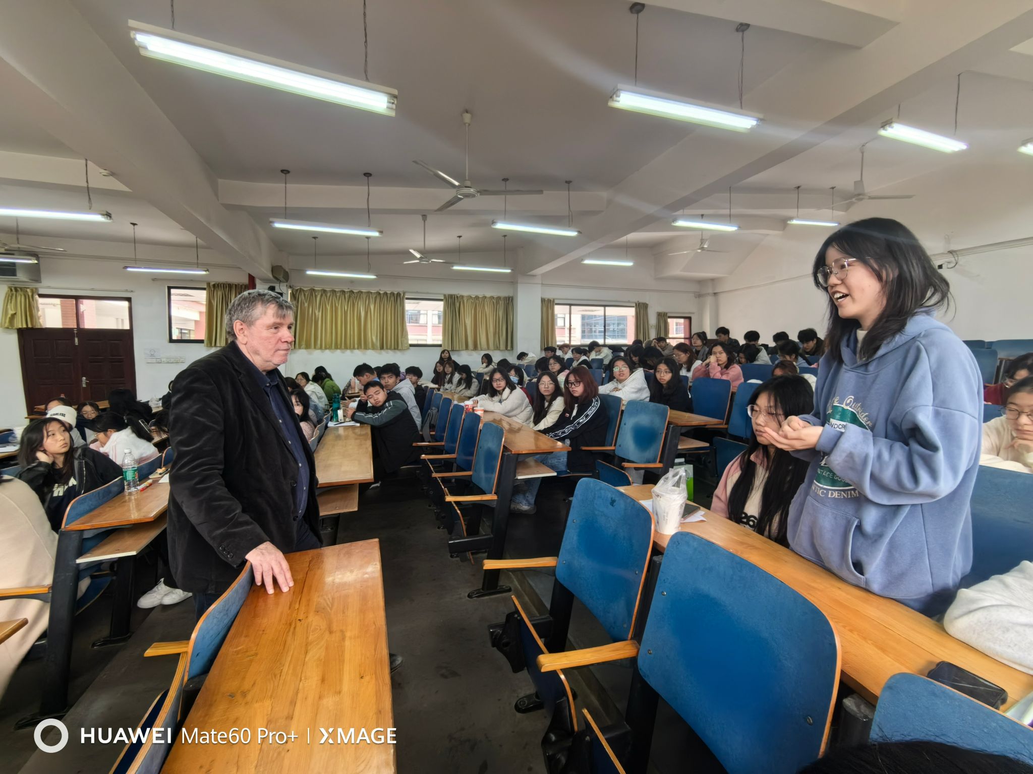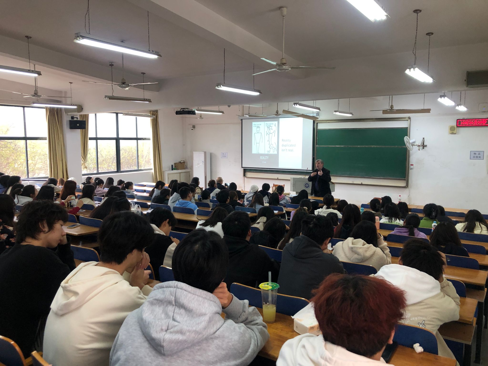 Johnston教授亲切幽默,善用简单的语言和实际例子来讲解复杂的概念。讲座开拓了学生的视野,加深了学生对翻译的理解和重新思考,同学们争相提问,与Johnston教授交流。讲座后,Johnston教授来到nba博彩
