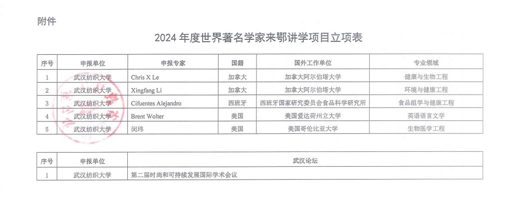 九、首次获批2024年度湖北省教育厅“世界著名科学家来鄂讲学计划”项目1项,教师赴国外知名高校公派访学4人,nba博彩