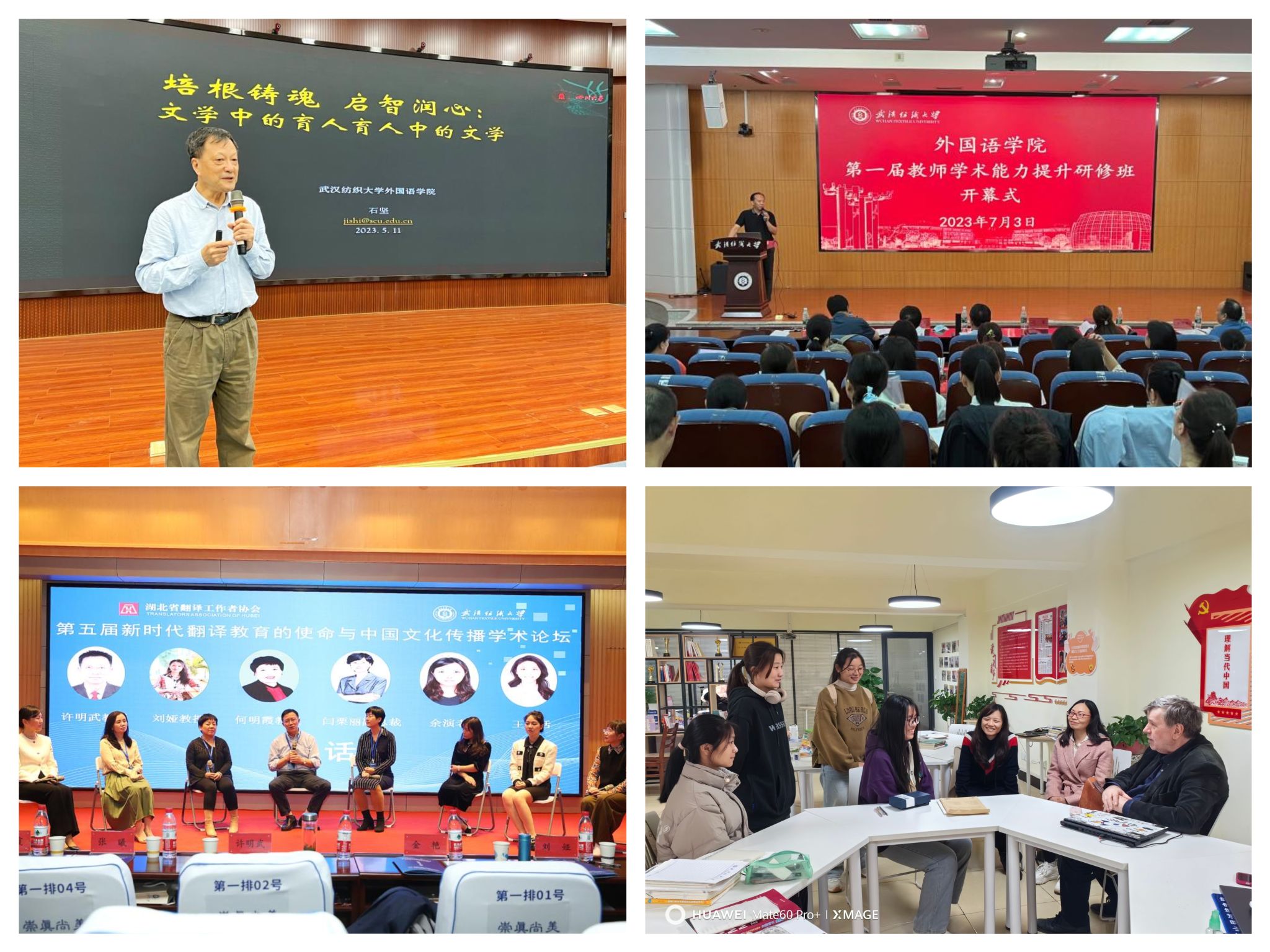 院士、英国贝尔法斯特女王大学David Johnston教授和教育部高等学校英语专业教指委委员、全国翻译专业学位研究生教指委委员等专家学者举办“崇文讲堂”学术讲座14次;教师应邀参加湖北省高校“理解当代中国”外语教学工作研讨会等国内外学术交流活动33人次。