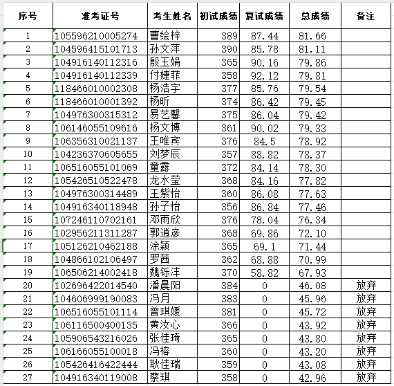 十大nba博彩网站 2026年硕士研究生招生调剂复试成绩公示