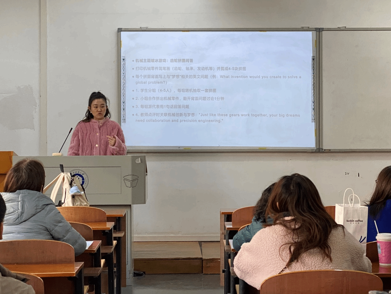 大学英语课程教学,分享了贴合工科专业特色、激发学生表达意愿的教学实践经验。她指出,针对机械专业学生英语基础较弱、不愿开口的特点,课程以专业相关元素为切入点设计系列互动活动:通过齿轮拼图配对问题讨论、机械工程师职业情景问答、梦想宣言接力赛等形式降低表达门槛,同时允许内向学生以手机记录、课后模仿分享的方式参与,兼顾不同层次学生需求。在课文讲解中,她摒弃单一客观题型,设计主观探究问题引导学生深挖文本,结合核心句式与词汇拓展,帮助学生知其然知其所以然;在课堂中灵活运用学习通、u 校园等线上工具发布随堂练习、投票与抢答,持续吸引学生注意力。课后通过创意设计绘制与英文描述的延展作业,实现语言学习与专业兴趣的深度融合。