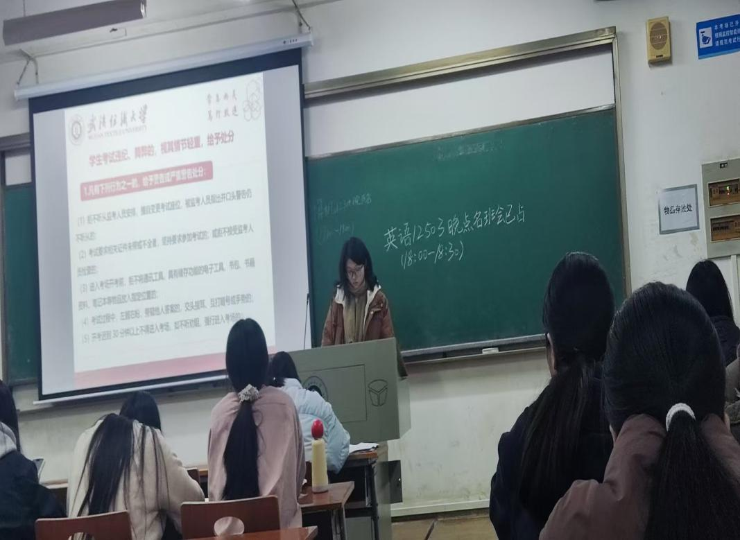 班会伊始,辅导员带领学生深入学习习近平总书记关于诚信建设的重要论述,强调诚信是学术精神的核心要义,更是青年成长的立身之本。结合四六级考试、期末考试等即将到来的学业检验,班会详细解读《国家教育考试违规处理办法》、《武汉纺织大学学生考试违纪处理办法》等规定,通过欧某某组织考研作弊、宋某某跨省团伙作弊等典型案例,直观展现考试作弊的法律后果与人生代价,明确违纪作弊从取消成绩到开除学籍的分级处理标准。