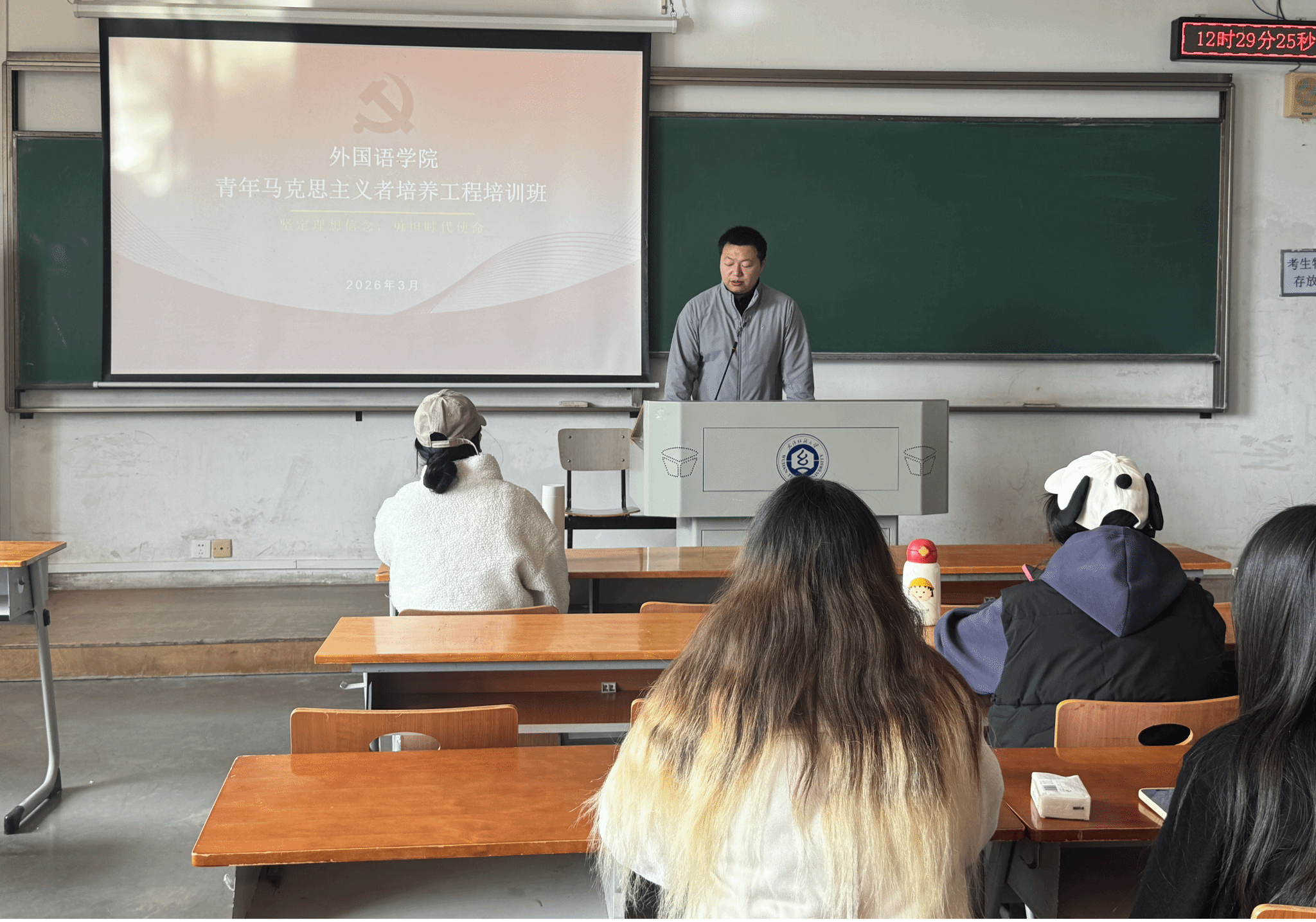 团委指导老师聂啸天以“筑牢信仰根基,讲好中国故事,争做新时代外语好青年”为核心主题,系统介绍了青马工程的时代背景、重要意义、培养目标与成长路径。结合外语专业特色,培训从理论铸魂、能力提升、实践淬炼三个维度展开深入讲解,引导学员在理论学习中坚定理想信念,在专业实践中锤炼过硬本领,在服务同学中涵养优良作风。